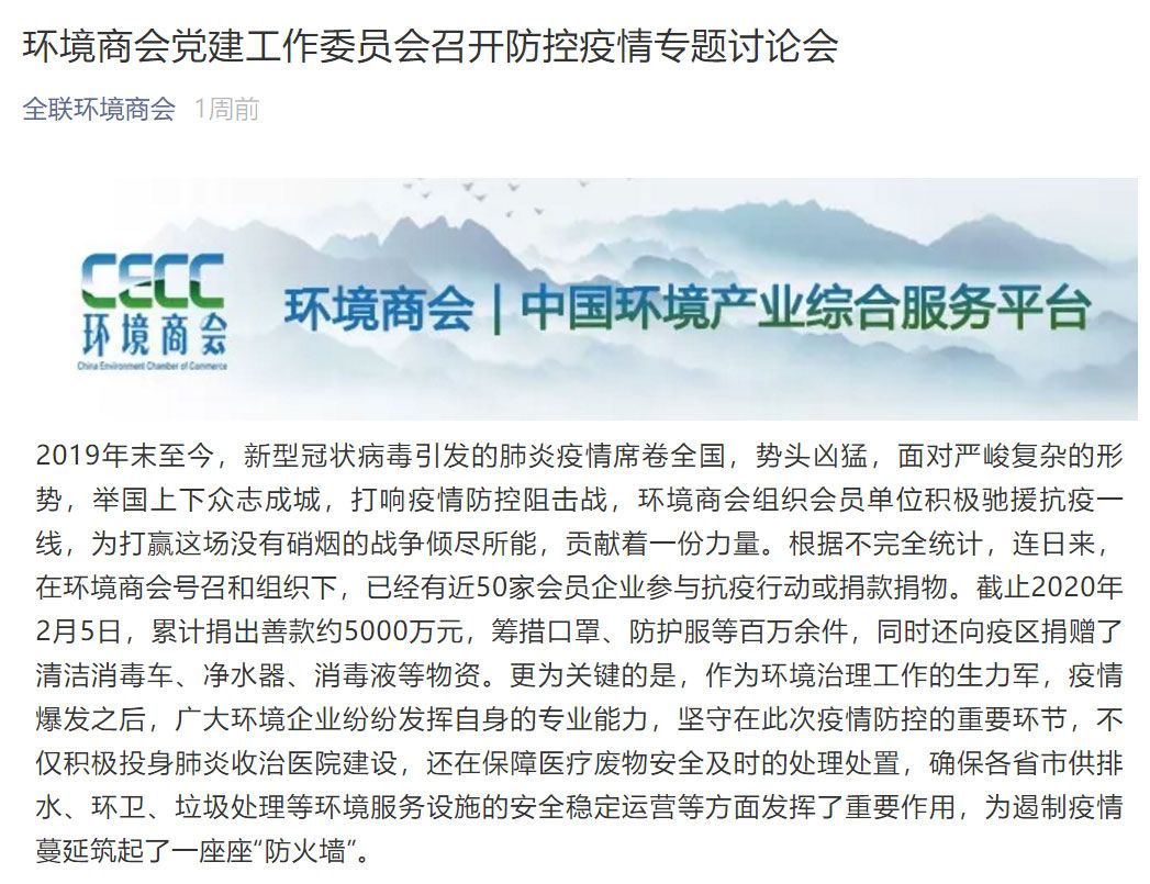不了解環保圈的人,可能會覺得環保企業是不是有點反應過度了?不就是一份文件么,至于這么激動嗎?這個問題還要從事情的來龍去脈說起。眾所周知,今年春節,趕上突如其來的新冠疫情,很多行業都受到了影響,北京著名的KTV“K歌之王”全體裁員,新潮傳媒的高管也是集體降薪20%。不過,說到環保行業,沖擊其實并沒有那么大。環保是一個弱周期行業,無論是污水處理,還是固廢處置,都是百姓日常生活中的剛需。疫情來了可以不去飯館吃飯,不到KTV唱歌,但家里洗菜、沖馬桶的水還是要排的,垃圾也是要扔的。非但如此,因為疫情,環保行業還增加了一大塊醫療廢物處置的業務,污水處理也比平時要求更高了,總體來講其實是更忙了,甚至有人還把環保處理稱作疫情防治的“第二戰場”。正是因為成了“第二戰場”,才讓環保企業感覺“亞歷山大”,因為第二戰場也需要防護,也需要大量的人力和資金投入。由于新冠病毒可能通過糞便傳播,所以污水處理廠需要增加次氯酸鈉、石灰等藥劑的投放。對于出水水質,還要加大對糞大腸菌群數的檢測頻次。為了保護員工,還要采購大量的防護服和口罩。這些藥劑、防護設備和檢驗檢測,都是需要真金白銀投入的。由于道路封路、工人放假等原因,無論是建筑材料還是環保設備的運輸都受到影響,導致項目進度延遲。而今年又是污染防治攻堅戰的收官之年,很多環保項目都要趕工期,這樣一來就很可能帶來合同履約的法律風險。“收款難”是環保企業的老問題,往常沒有疫情的時候,地方政府支付尚且時斷時續。如今疫情一來,地方政府財政支出加大了,為了支援小微企業還要減免稅費,這極有可能造成地方政府的支付能力下降,未來“付不起”水費。回到環保行業,雖說是一個弱周期行業,但這幾年卻正在經歷多事之秋。2018年的金融去杠桿和PPP清庫存,讓很多企業深陷資金鏈危機。2019年就有一大波民營企業被迫“賣身”,直到現在也還有人沒緩過勁來。這個時候再來一波疫情,無疑會讓他們的處境雪上加霜。正因為如此,在微信公眾號“環保圈”2月7日所做的調查當中,才會有29%的企業認為疫情對企業“影響較大,導致企業經營出現部分困難,經營勉強維持”,只有6%的企業認為“沒有明顯影響”。2月6日,全國工商聯環境商會也緊急發出呼吁,希望能將環境管理納入國家衛生防疫體系,給予一線的環境工作者應有的防護支持,并在疫情期間確保地方政府及時支付環境企業的運行費用。了解了環保企業的這些痛點,再來看浙江省文件,才能體會環保圈為什么如此激動。浙江省出臺的這份文件,全稱叫做《關于全力做好疫情防控支持企業發展的通知》,里面規定了六條措施,針對的其實不光是環保行業,還有房地產、建筑業等。而在對環保行業的支持方面,措施其實也不多,主要就2條,分別是:措施雖然不多,但貴在“精準”。每條措施都是對癥下藥,分別解決了企業“收款難”擔心、項目進度延遲、防護物質缺乏、運營成本增加等痛點,可謂是精準施策。說起這次疫情防治,浙江省的表現其實可圈可點。早在湖北省二級響應的時候,浙江就做出了一級響應。直到目前,浙江省也沒有一個死亡病例,而且治愈率高達35.2%。2018年時,筆者曾經跟隨螞蟻金服去杭州、武漢調研他們“無現金城市”的推廣工作,彼時電子支付還沒像現在這么普及。螞蟻的人說,雖然兩座城市都是他們的樣板市,但在武漢推廣明顯要比杭州難,武漢的優勢是大學生多,接受新鮮事物容易。但武漢的國企也多,整座城市的文化還是偏“官本位”,效率有點低。而在浙江,則是當時的省政府副秘書長親自出馬為我們做介紹,我清楚地記得,他把政府服務比作是“淘寶購物”,說是要讓大家像在淘寶上買東西一樣,在網上辦理各種政務服務,“電子商務的今天就是電子政務的明天”。在中國,其實不光是環保企業,需要的都是這種政府的“服務精神”,他們需要的不是喊口號,而是做實事。不是錦上添花,而是雪中送炭。這也是為什么浙江能夠成為中國民營經濟最發達的地區之一的原因。這不,浙江省的文件出臺之后,全國工商聯環境商會就表示,在為浙江省點贊的同時,環境商會也呼吁更多的省市向浙江學習,爭取給予抗疫一線的市政公用企業財稅等相關政策支持,幫助企業平穩發展。